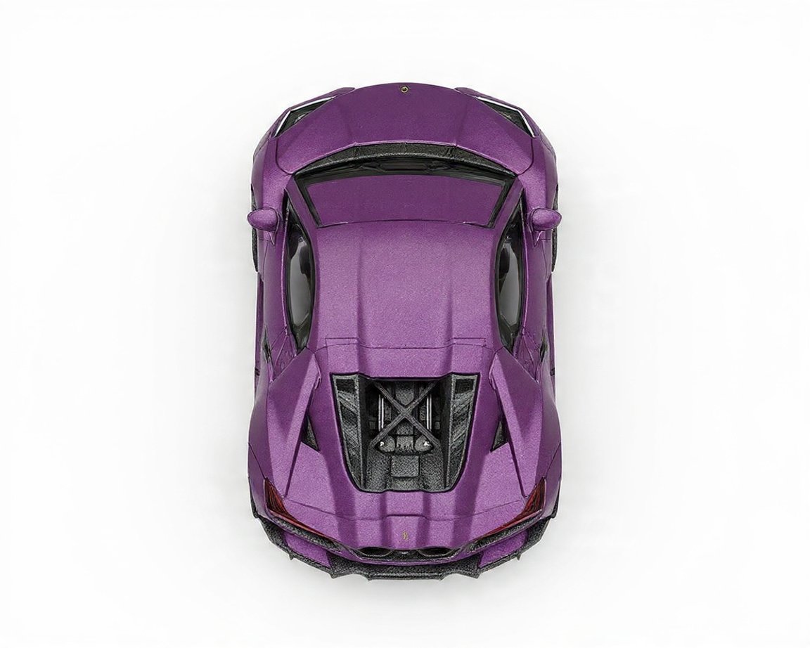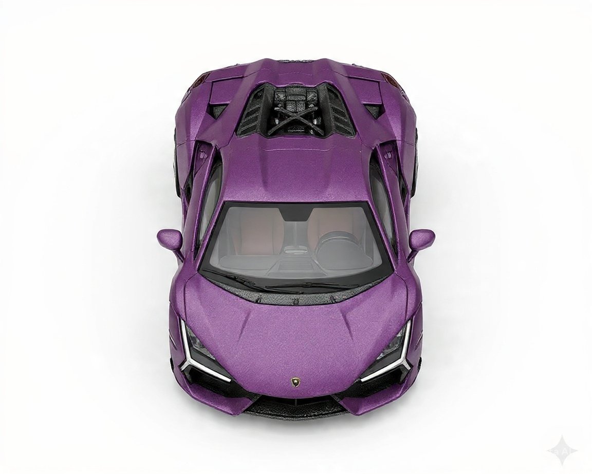 Uno de los elementos más destacados de esta versión es su exclusivo color Viola 30th Matte Purple, un acabado mate que resalta la silueta angular y los detalles aerodinámicos del superdeportivo. Esta tonalidad aporta una apariencia elegante y llamativa que convierte a la miniatura en una pieza sobresaliente dentro de cualquier colección.
