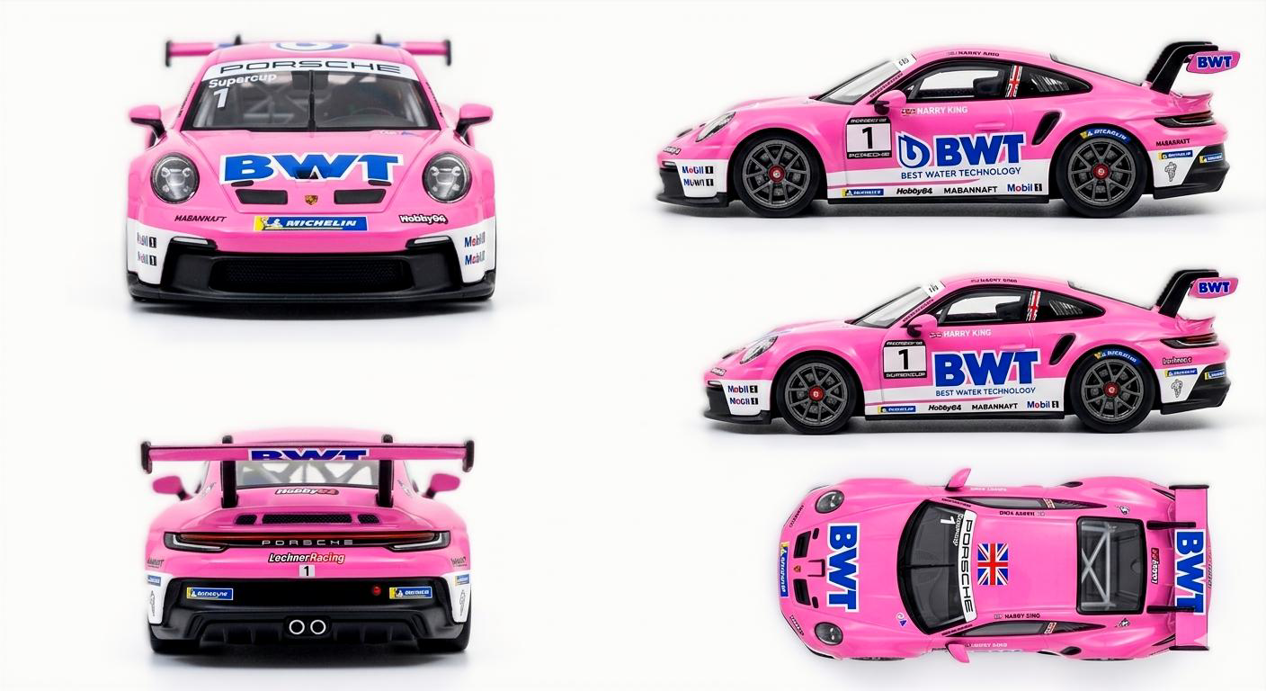 El Porsche 911 GT3 Cup (992) #1 BWT Lechner Racing 1:64 – El Líder de la Supercup es una miniatura coleccionable que captura la esencia de uno de los autos de competición más reconocidos del automovilismo moderno. Inspirado en el poderoso Porsche 911 GT3 Cup (992), este modelo reproduce fielmente el vehículo utilizado por el equipo Lechner Racing en la prestigiosa Porsche Supercup.